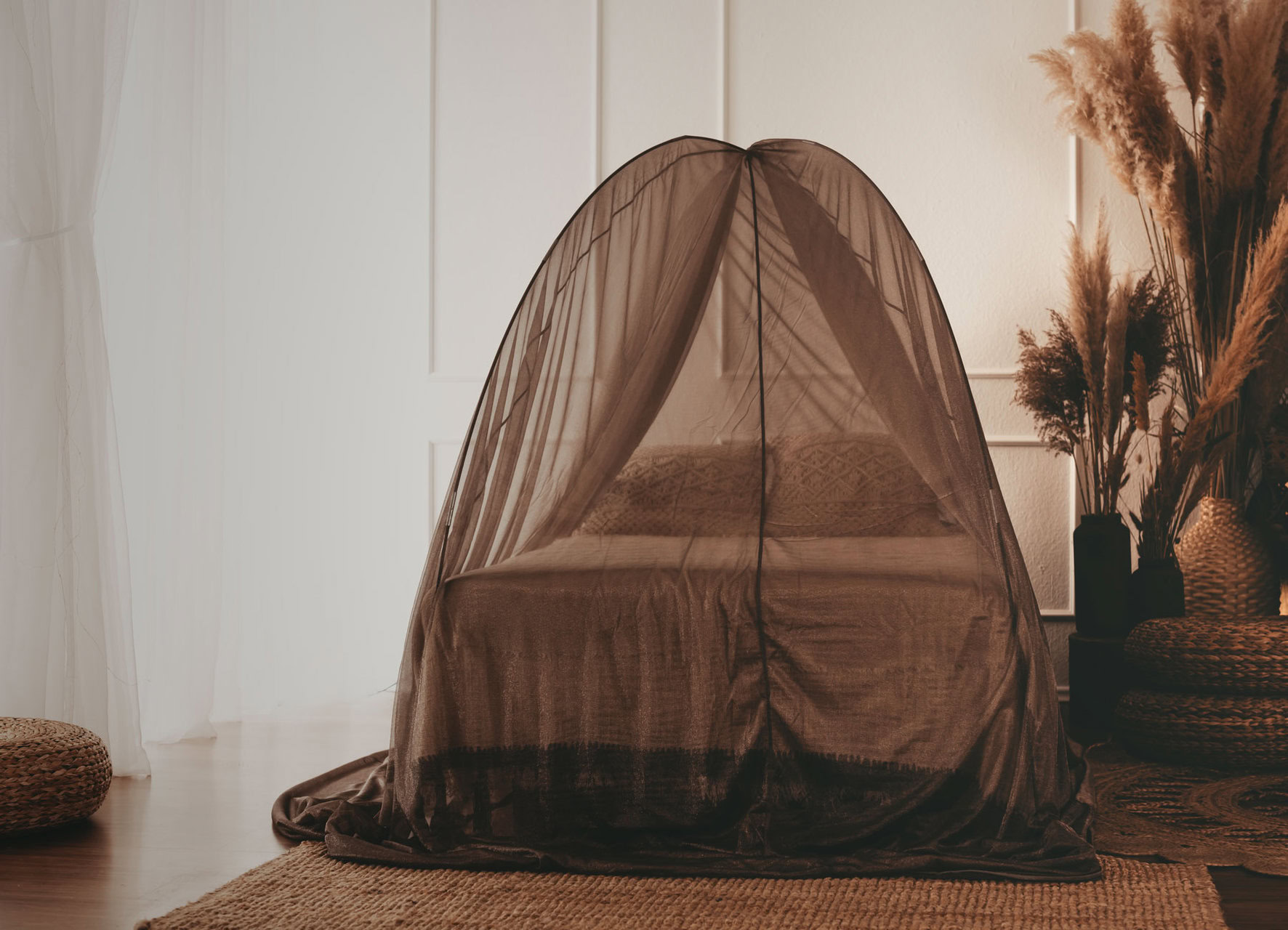 Le ressenti intérieur est aérien et léger, intime et propice au repos. Il est confectionné avec la tulle d'argent très protectrice et très transparente.