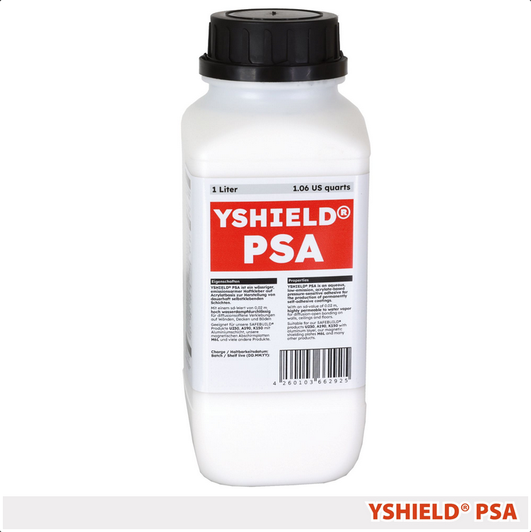 La colle PSA est adhésive et aqueuse, à faible émission, à base d'acrylate, destiné à la production de couches auto-adhésives permanentes. Avec une valeur sd de 0,02 m, il est hautement perméable à la vapeur d'eau pour un collage ouvert à la diffusion sur les murs, les plafonds et les sols. Convient aux produits de blindage A300-HEMP, U230, A190, K150 et les film et plaques de blindage magnétique de la série M6L et de nombreux autres produits.