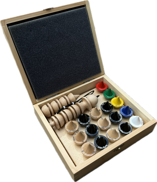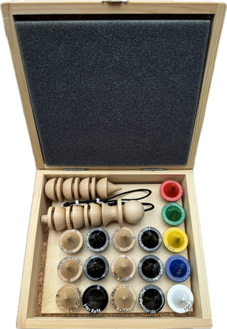 Le set de pendules « Empereur jaune » est utilisé entre autre la navigation dans le système des 12 méridiens et sert d’opérateur vibratoire. Il est conçu et construit de manière à pouvoir fonctionner sur le principe d’un « interrupteur à transistor », ouvrant ou fermant la transmission des flux vibratoires selon les besoins.