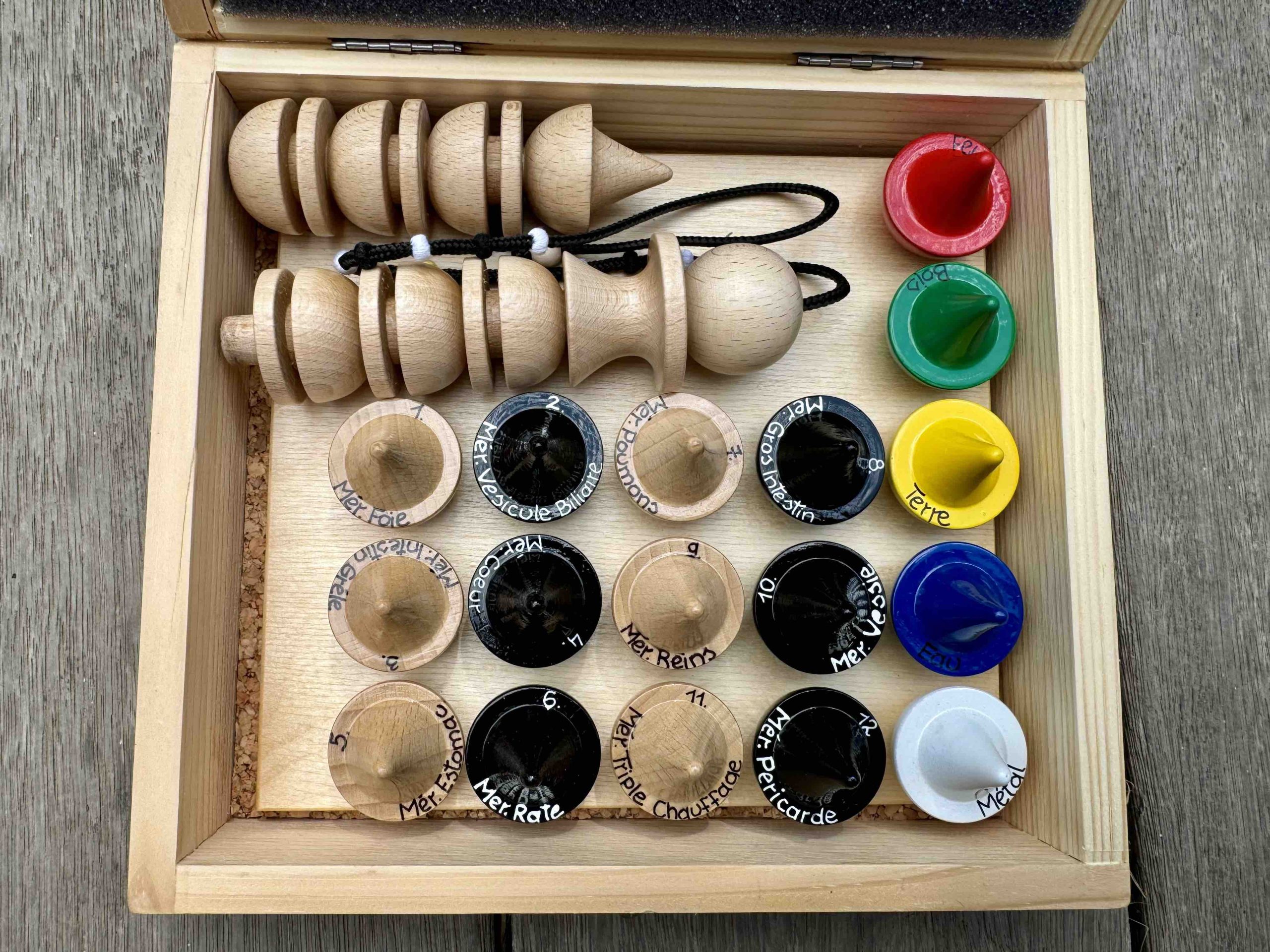 Un ensemble de 12 têtes de résonateur "Qi-Bo" (nom donné au mythologique docteur chinois de l’Empereur Jaune) qui sont porteuses de signatures vibratoires pour les 12 méridiens.